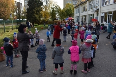 Šventės dieną nuo pat ankstyvo ryto visame darželyje girdėjosi šurmulys. Vaikų laukė Rudenėlio šventė kupina staigmenų, žaidimų, pažįstamų personažų su kuriais šokome, dainavome, žaidėme, džiaugėmės rudenėjančia gamta ir jos spalvomis. Vaikai susipažino su Fėja, kuri prašė pagalbos surasti jos Stebuklingosios knygos lapus išdraskytus vėjo, atradę juos Fėja aptarė su vaikučiais visus rudens požymius ir be abejo į svečius sulaukėme Rudenėlio, kuris pavaišino vaikučius savo derliumi.